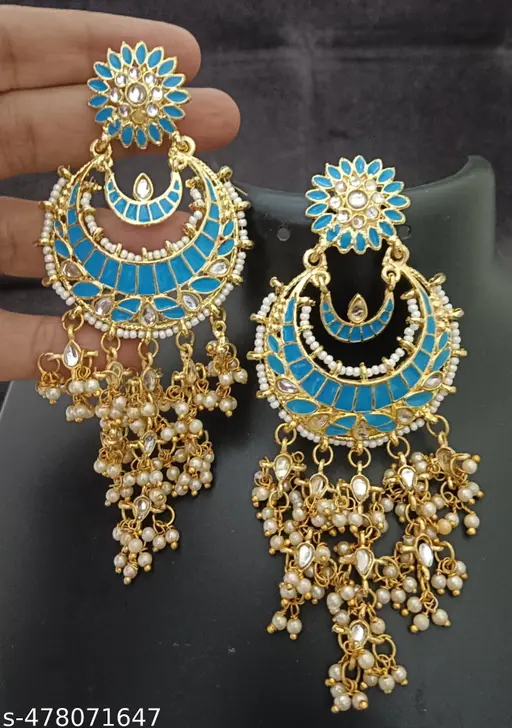 Blue Meenakari Pearl Chandbali