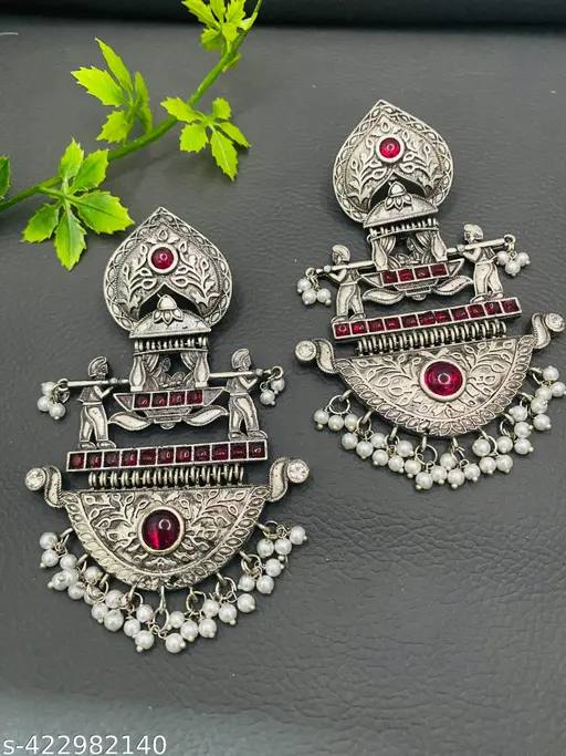 Oxidised Doli Shape Chand Bali Earring