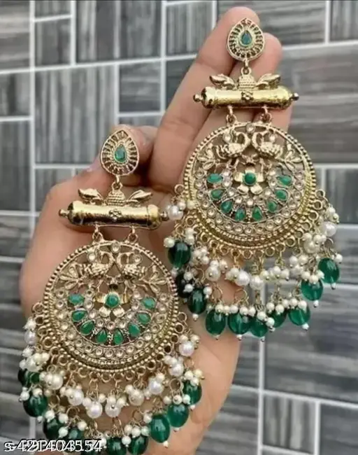 Be the first to review “Trending Green Gold Plated Jhumkas”
